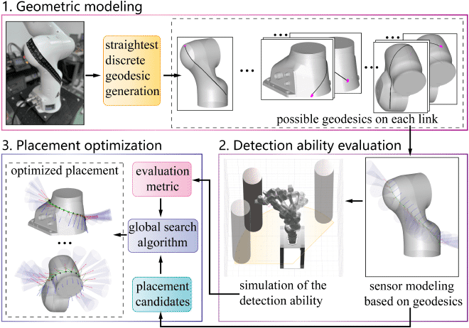 In this work, we propose a systematic method to optimize the placement of the flexible proximity sensor for HRC. To prepare for the optimization, the geometric model of a flexible sensor is built.
